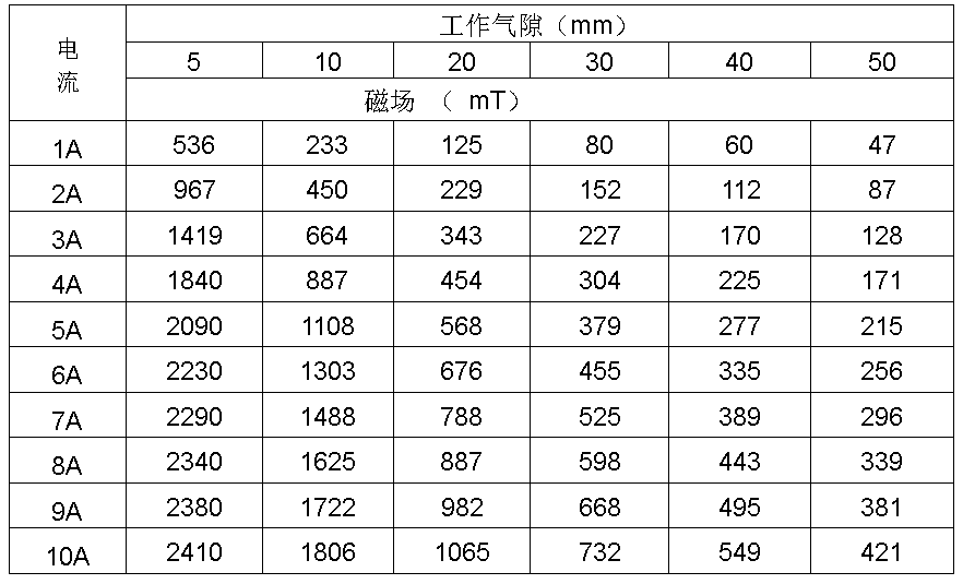 最大磁場(chǎng) :工作氣隙5mm時(shí),H≥2T