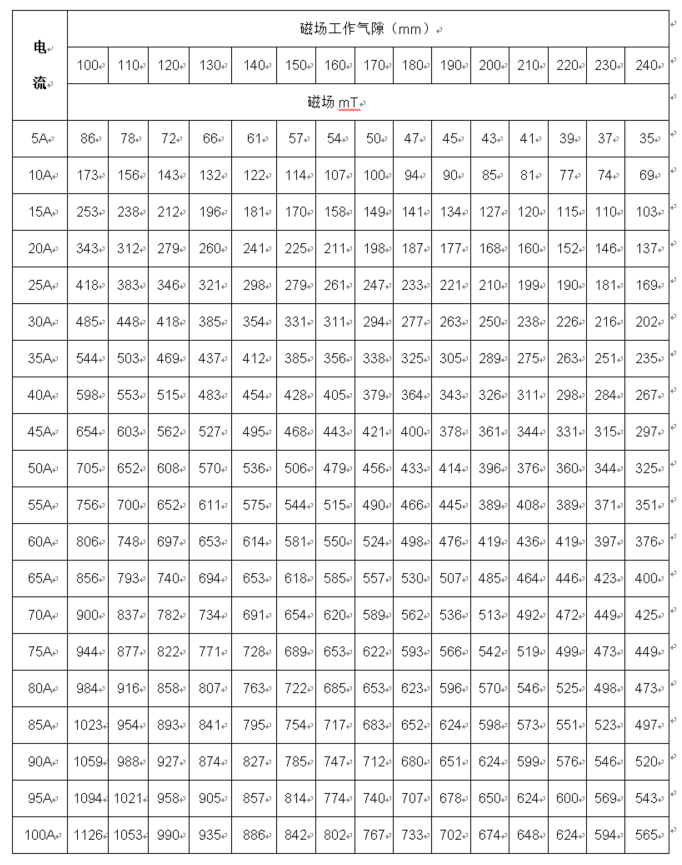 4.0、磁場(chǎng)參數(shù)表